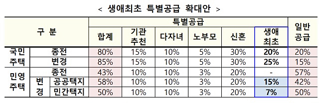 기존에는 생에최초 특별공급이