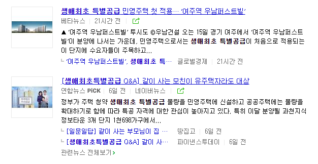민간 아파트 생애최초 특공에