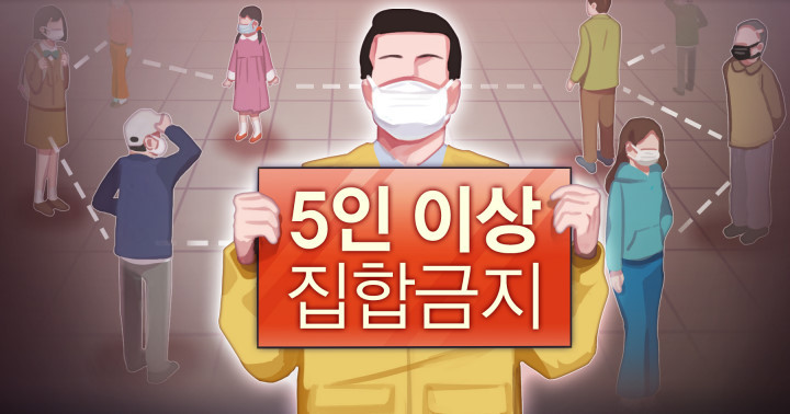 5인이상 집합금지 [회사 식당 교회 가족 학원 미용실 독서실 백화점 골프장]