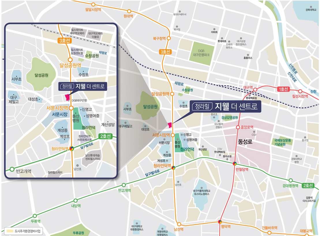 달구벌대로와 태평로 사이, 대구중심 청라언덕 맨 앞자리, 청라힐 지웰 더 센트로