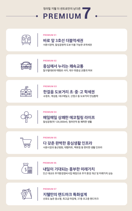 청라힐 지웰 더 센트로는 대구 부동산 1번지인 달구벌대로 인근에 위치하며 도시철도 2호선 청라언덕역과는 직선거리 700m 정도다. 여기에다 도시철도 3호선 서문시장역과 달성공원역 사이에 위치해 트리플 역세권 입지를 자랑한다. 신영건설에 대해서 궁금하신 분들은 아래를 참고하세요.