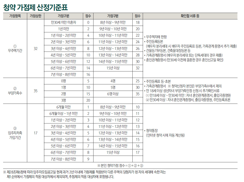 청약 가점제 산정기준표