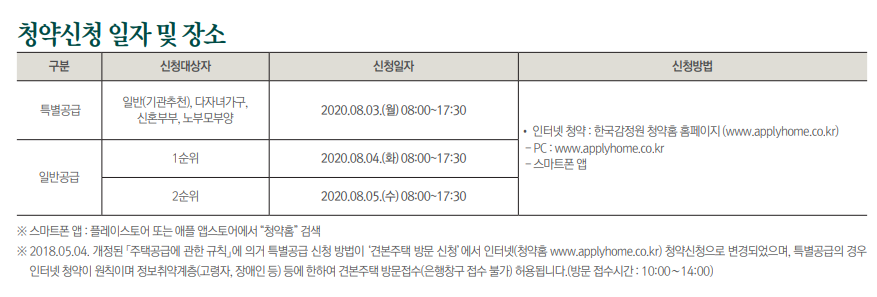 8월3일 특별공급 청약접수를 시작으로