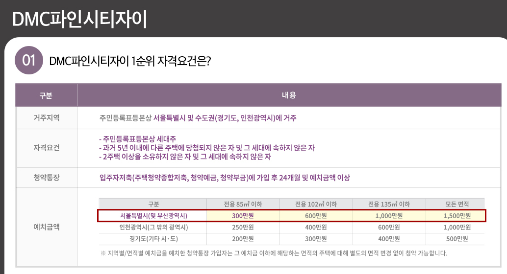 DMC파인시티자이 특공을 위한