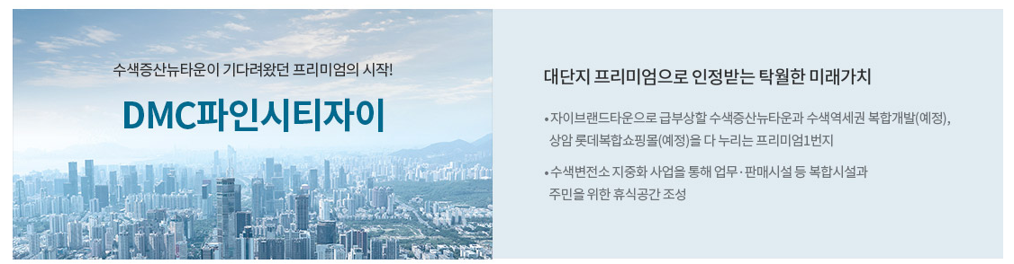 강북 지역에서는 수색증산뉴타운중 증산2구역인 'DMC센트럴자이'와 수색6구역 'DMC파인시티자이', 수색7구역인 'DMC 아트포레자이'가 주목할 만하다. 요즘 핫한 다른 분양단지 검색은 아래에서 확인해보세요.