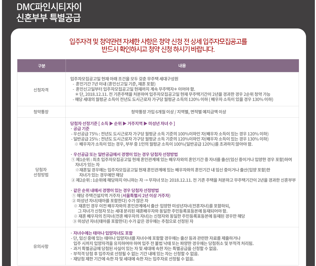 DMC파인시티자이 신혼부부 특공