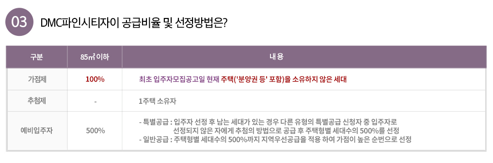 DMC파인시티자이 우선공급 자격.