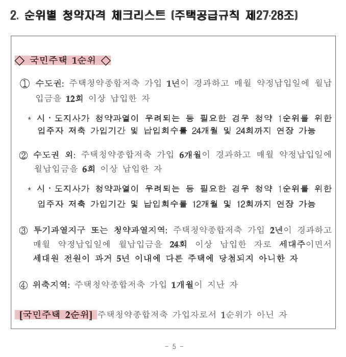 주택청약 자격 체크리스트