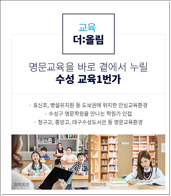 동대구역, 대구 지하철1호선, 버스터미널 등이 있는 복합환승센터와 가깝고, 효신초등학교가 도보권에 자리해 안심 통학이 가능하다.