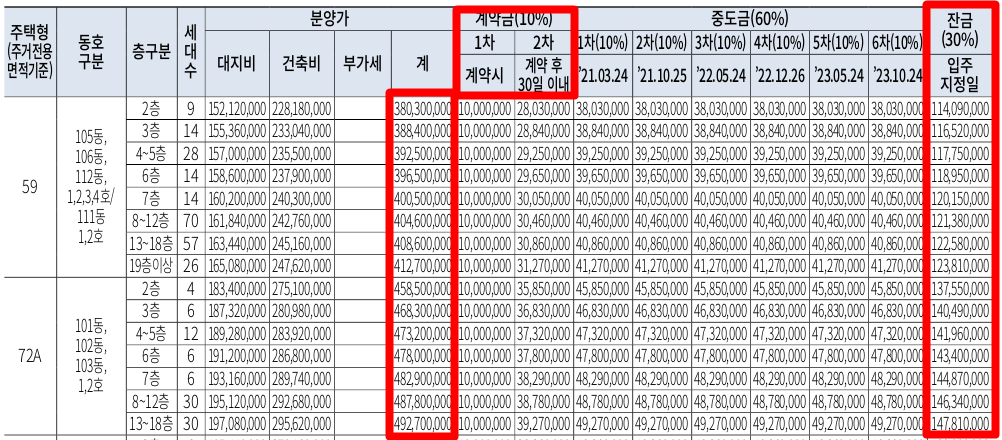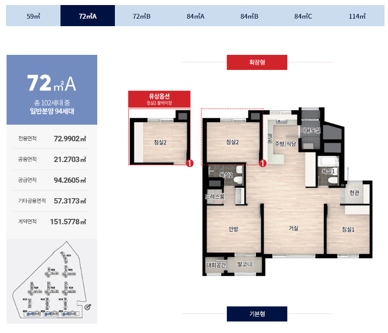 조합원분을 제외한 일반분양은 59㎡ 232가구, 72㎡A 94가구, 72㎡B 94가구,
