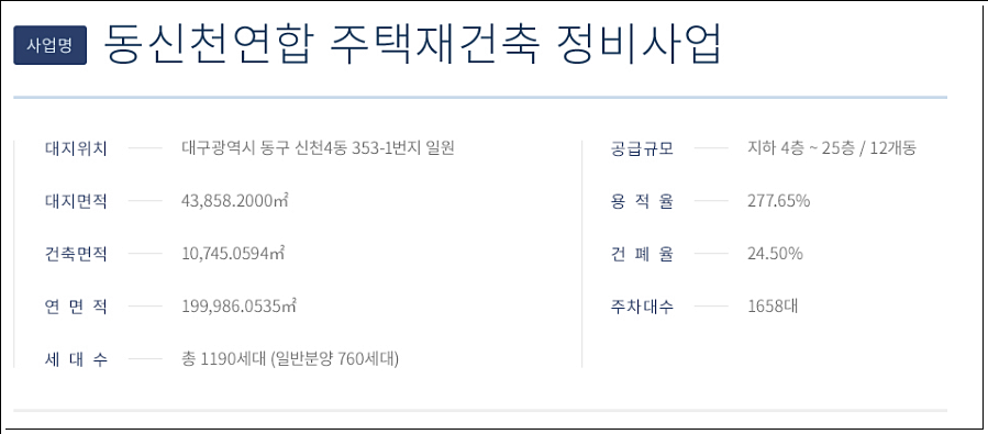 더샵 디어엘로는 대구 동구 신천4동 일대 동신천연합 주택재건축 정비사업을 통해 짓는 아파트다.
