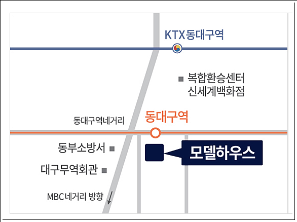 견본주택은 대구시 동구 신천동 328-1번지에 위치할 예정이다. 입주는 2024년 3월 예정이다. 홈페이지를 통해 유니트별 영상과 가상현실(VR) 콘텐츠, 입지, 단지 배치, 특장점, 특화설계, 마감재 등의 상세 정보를 확인할 수 있다.