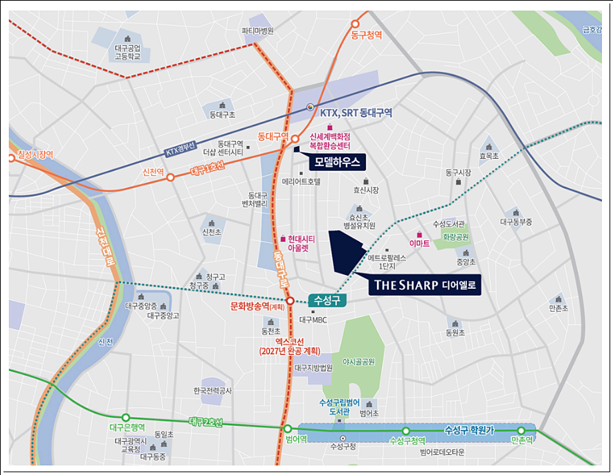 더샵 디어엘로는 동대구역 복합환승센터를 중심으로 조성되고 있는 신흥주거지인 동대구생활권에서도 핵심 입지에 조성돼 쾌적한 주거환경을 누릴 수 있다.