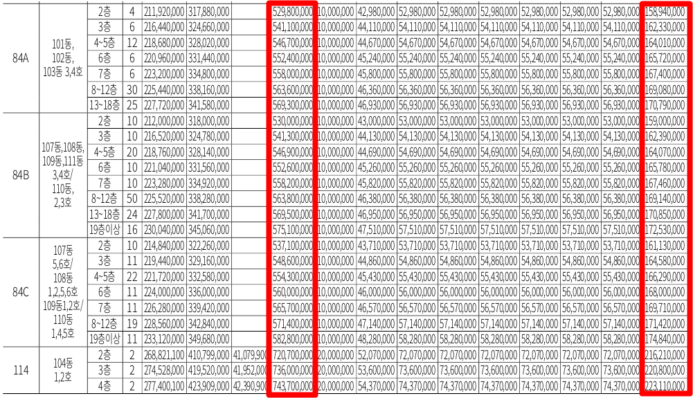 84㎡A 89가구, 84㎡B 150가구, 84㎡C 95가구 114㎡ 6가구 등 총 760가구다.