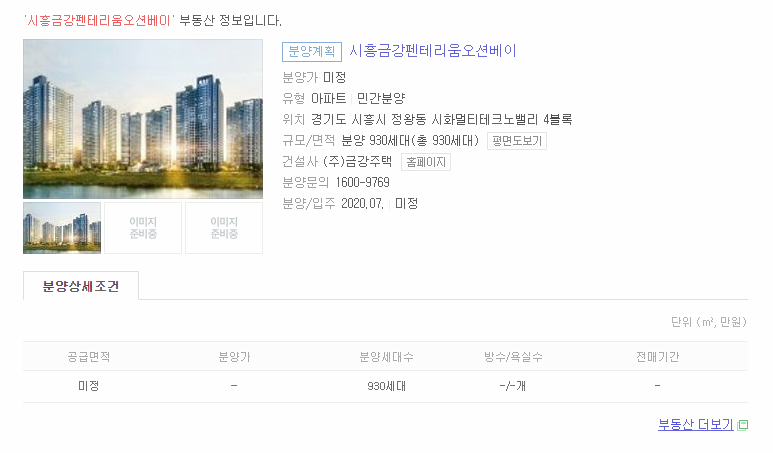 아직 시흥 금강펜테리움 오션베이 분양가 평면도 청약 정보는 홈페이지에 업데이트 되지 않았습니다.