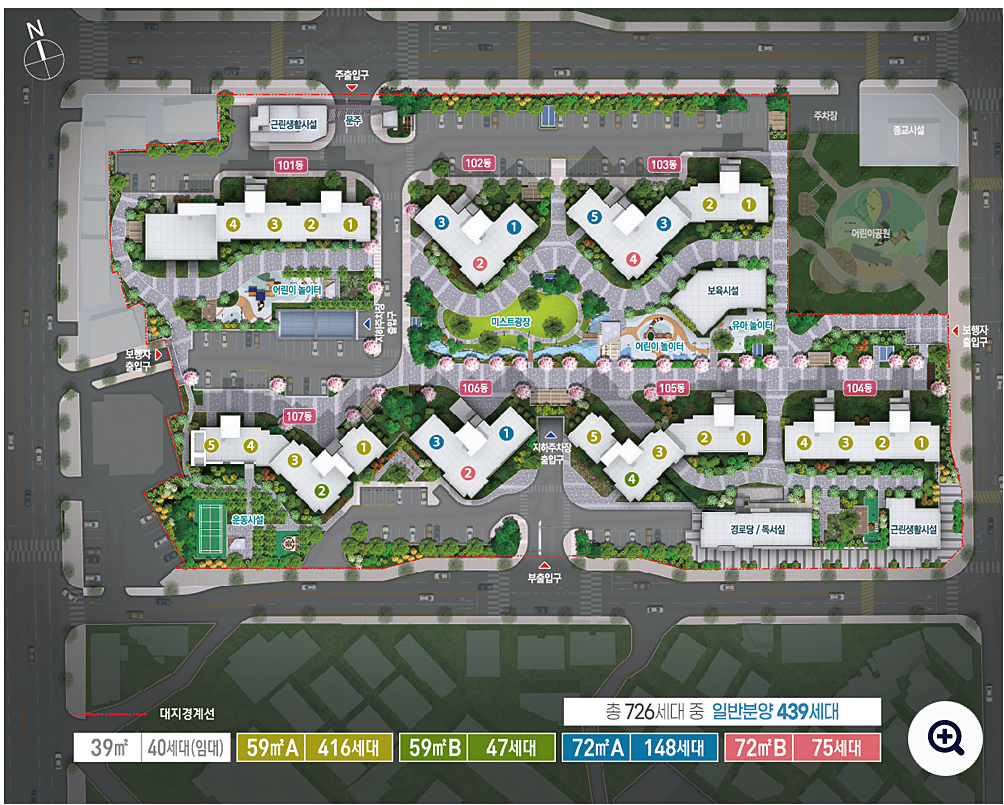 단지는 지하 2층~지상 25층 7개 동 전용면적 59㎡, 72㎡ 총 726가구 중 439가구가 일반분