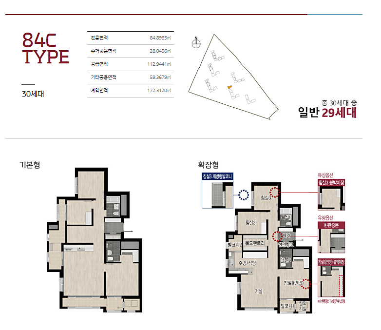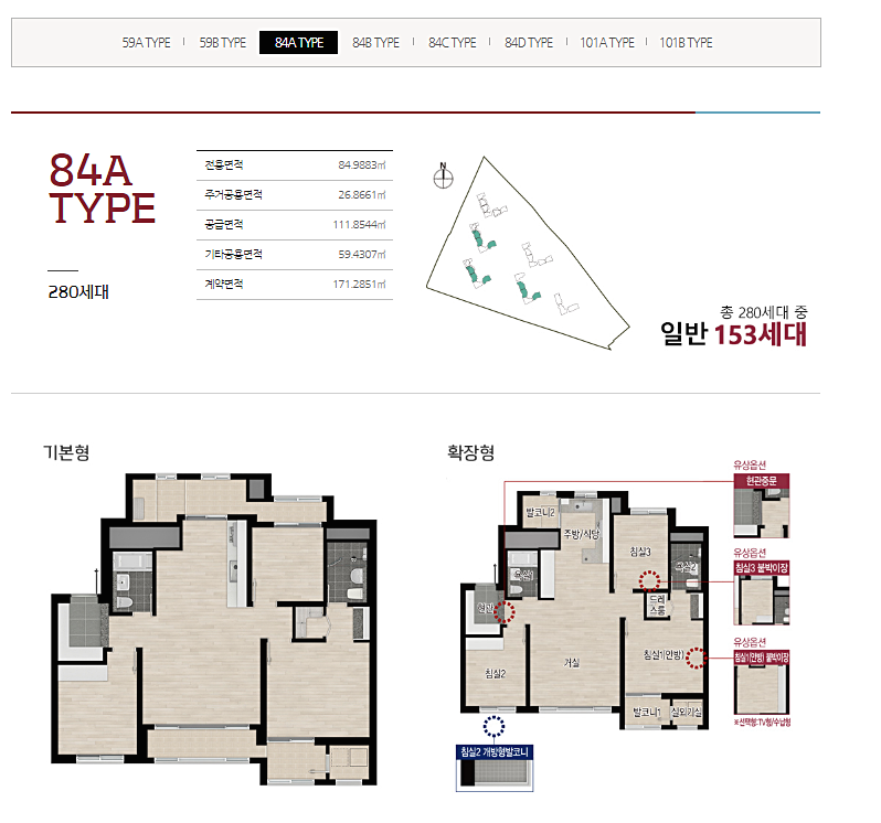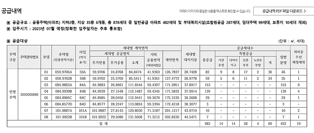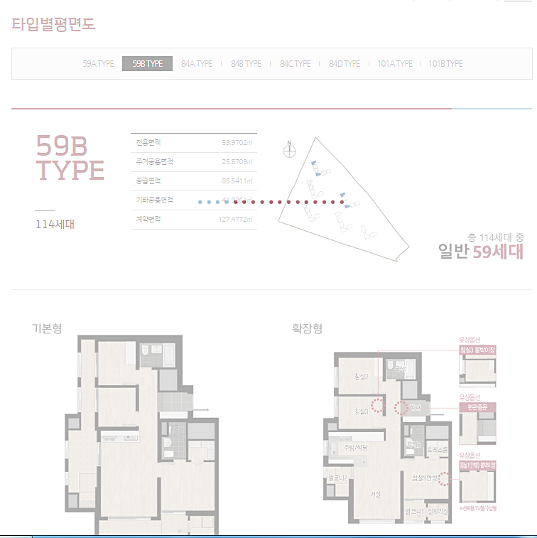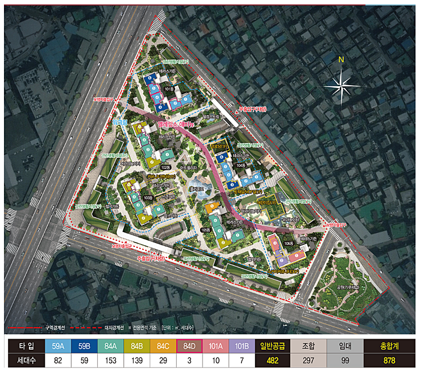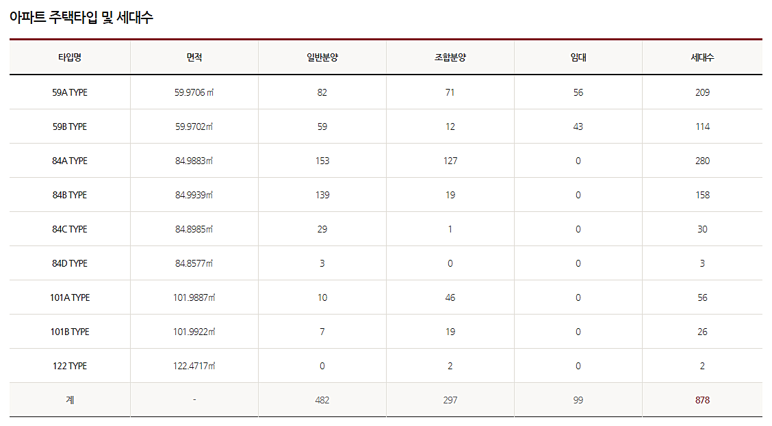 전용면적별 일반분양 가구 수는 △59㎡ 141가구 △84㎡ 324가구 △101㎡ 17가구로 전체 가구 수의 55%에 달한다.