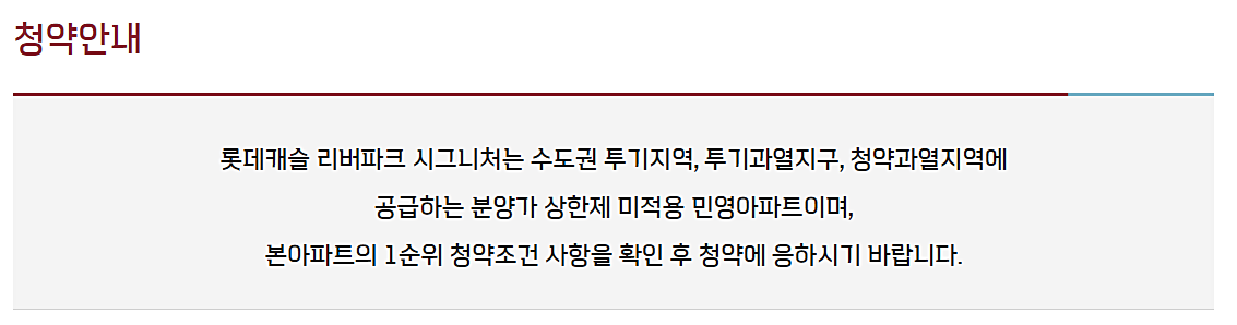 롯데캐슬 리버파크 시그니처 입주자모집공고 분양가