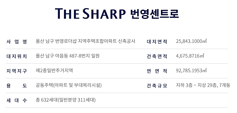 ‘더샵 번영센트로’의 건축규모는 지하 3층, 지상 최고 29층, 7개동 총 632세대이며, 이 가운데 일반분양은 311세대다. 일반에게 공급되는 세대수는 59㎡ 114세대, 75㎡92세대, 84㎡ 105세대다.