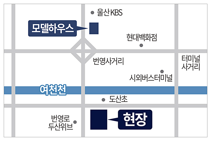 견본주택은 남구 달동 번영사거리 인근에 위치해 있다.