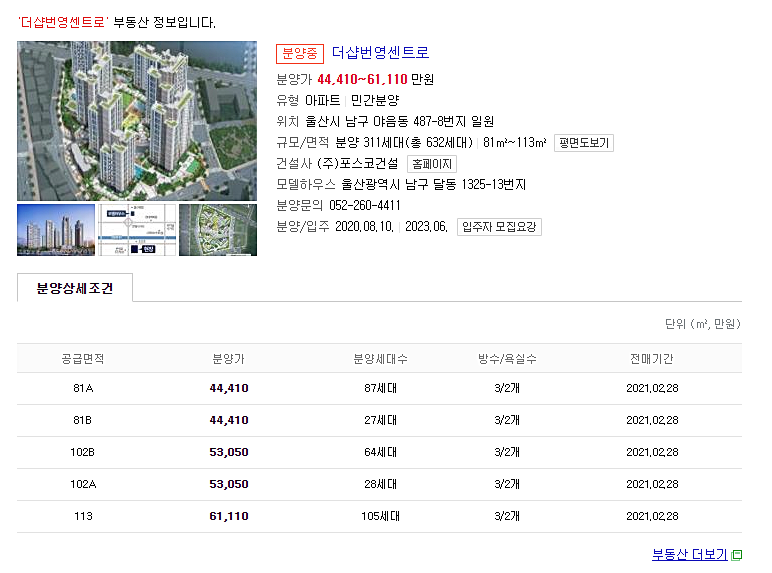 더샵번영센트로 울산 평면도 입주자모집공고 주변시세 탐이난다.