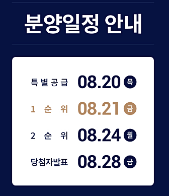 청약일정은 20일(목) 특별공급을 시작으로 21일(금) 1순위, 24일(월) 2순위 접수다.