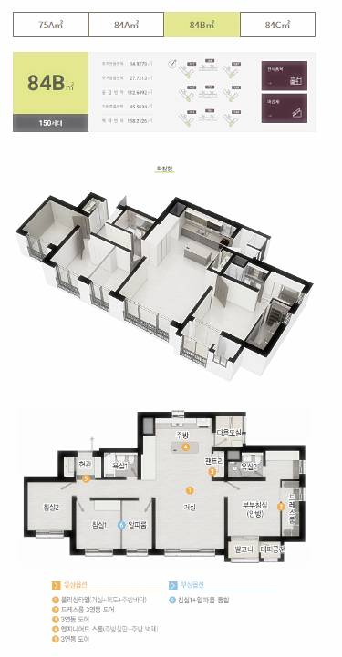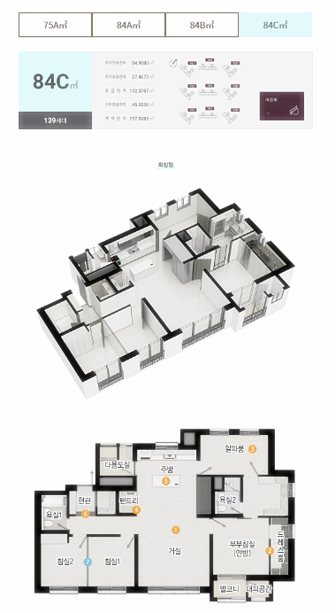 전용 75~84㎡의 면적으로 구성된 단지입니다.