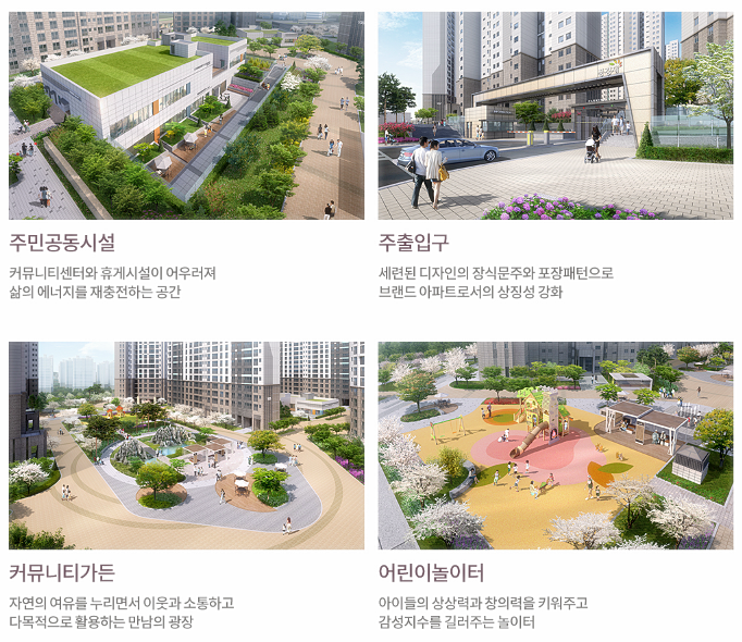 지상에 차 없는 친환경 공원형 단지로 설계해, 입주민의 여가 공간으로도 활용할 수 있는 환경을 갖춘다. 또, 단지 내 세대의 주차를 100% 지하에 할 수 있게 해 입주민들이 편리하게 차량이동을 할 수 있도록 설계했다.