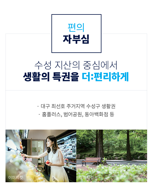 교육환경도 뛰어나다. 지산초, 지산중, 수성고 등이 인접해 있어 대구의 강남이라 불리는 수성구의 명문학군을 도보로 통학
