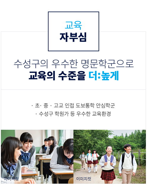 교육환경도 뛰어나다. 지산초, 지산중, 수성고 등이 인접해 있어 대구의 강남이라 불리는 수성구의 명문학군을 도보로 통학
