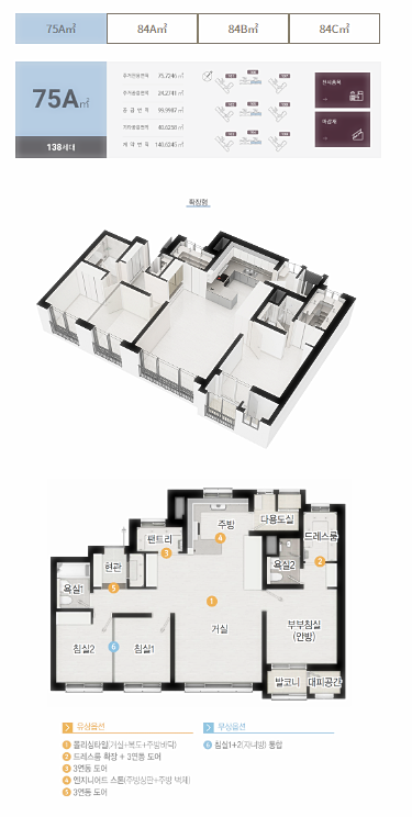 전용 75~84㎡의 면적으로 구성된 단지입니다.