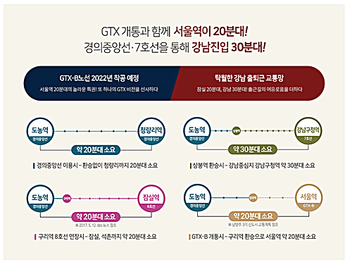 도보로 8분 거리로 이용할 수 있는 경의중앙선 도농역은 GTX-B 개통 시 서울 및 수도권 접근성을 크게 강화할 것으로 기대된다. 단지 바로 앞에는 경의중앙선 철도복개 및 공원화 조성사업이 추진되고 있어 쾌적한 그린 인프라를 선사할 예정이다.