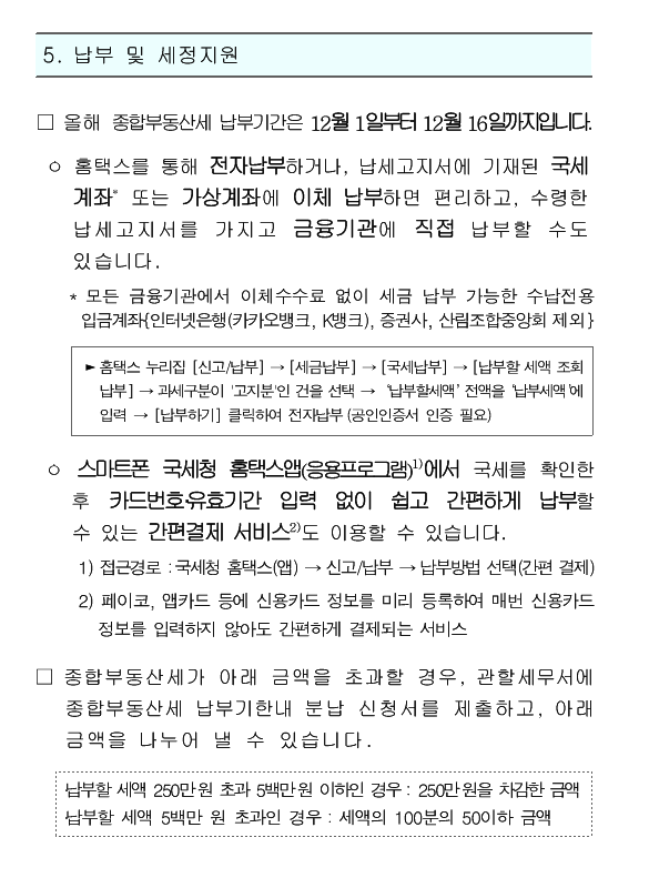종합부동산세 고지 신고 및 납부 관련 질문들!!
