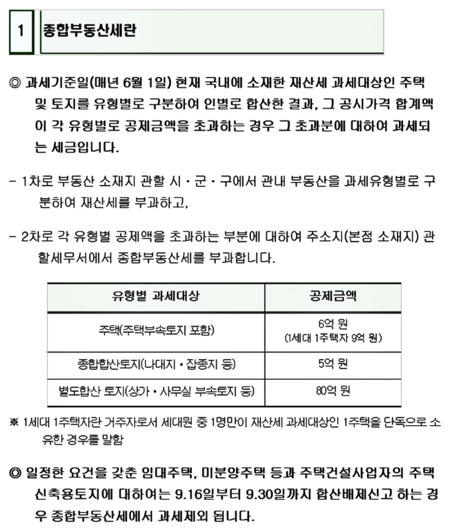 종합부동산세(종부세) 기준 및 방법에 대해 잘 정리된