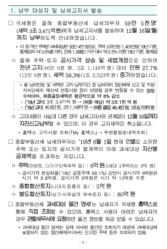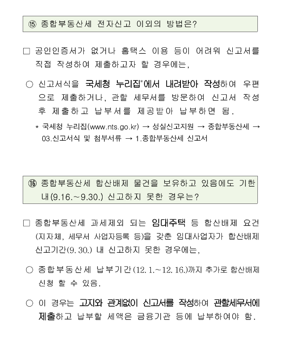 종합부동산세 고지 신고 및 납부 관련 질문들!!