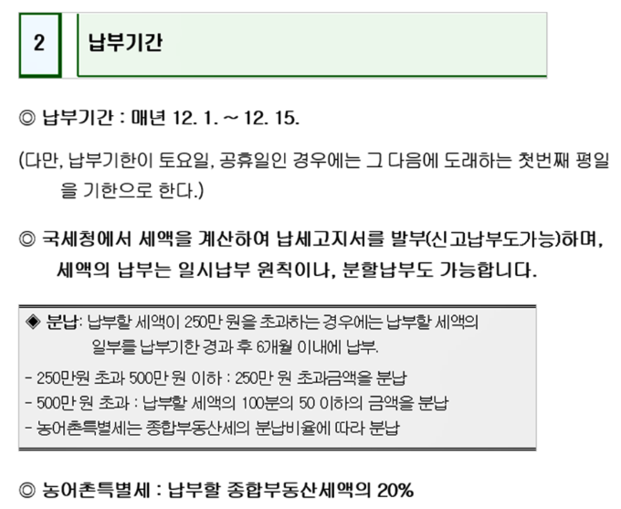 납부는 12월 1일부터 15일 사이 납부하면 됩니다.