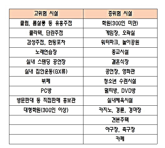 실내 50인 이상 실외 100인 이상 대면 모임 및 행사는 원칙적으로 금지된다. 또 결혼식·장례식·야유회·콘서트·박람회·학술대회 등이 포함된다.